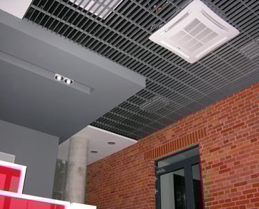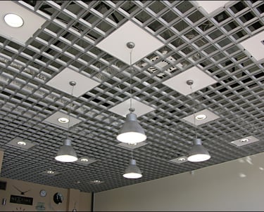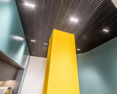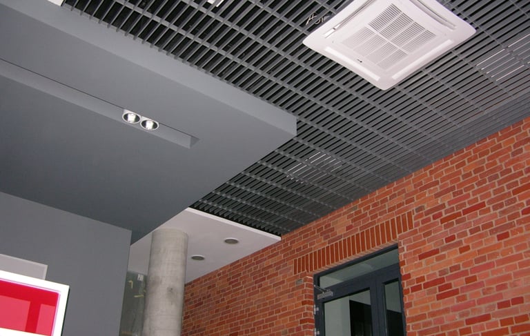 Open Cell ceilings are modern open ceilings with an open area of up to 90% (depending on the type of grid and mesh size). They are used in retail spaces, offices, corridors, hallways, and more. Mesh sizes ranging from 50 to 300 mm allow you to customize the ceiling's appearance to any room. Combining different square and rectangular grid sizes offers limitless ceiling design possibilities. They are fully removable, making them ideal for concealing any installations located beneath the ceiling while allowing easy access. Open cell panels can also be installed on standard T24 and T15 grids.